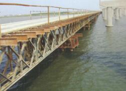 在第二次世界大战初期,英国和美国与1938年采用英国工程师唐纳·贝雷设计的米字型桁架钢桥,即“贝雷钢桥”为英美联军的军用桥架。我国在上个世纪60年代定型生产此钢桥,并作为备战钢桥储备于各地方交通厅战备库。随着我国公路、水电、铁路、市政建设的突飞猛进的发展,贝雷钢桥已经被广泛应用到施工的建设中,大型跨海大桥施工用栈桥,都无一不用上了贝雷桁架片。目前又开发应用于城市地铁的建设当中。我们相信,随着各种工程建设的需要,贝雷钢桥将会发挥越来越大的作用。
