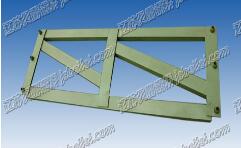 在下弦杆上,设有4块横梁垫板,其上方有凸榫,用以固定横梁在平面上的位置,在下弦杆的端部槽钢腹板上还设有两个椭圆孔,供连接抗风拉杆使用。贝雷片竖杆均用8#工字钢制成,在竖杆靠下弦杆一侧开有一个方孔,它是供横梁夹具固定横梁使用的。贝雷片的材料为16Mn,每片架重270kg。