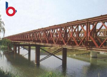 贝雷桥是世界上应用广泛,更为流行的一种桥梁,它具有结构简单,运输方便,架设快速,分解容易的特点。同时具备承载能力大,结构刚性强,疲劳寿命长等优点。它能根据实际需要的不同跨径组成各种类型和各种用途的临时桥,应急桥和固定桥,具有构件少,重量轻,成本低的特点。